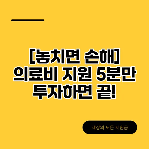 [놓치면 손해] 의료비 지원 5분만 투자하면 끝! 2025년 06월 28일 by 대한민국 지원금 복지 제도 알리미 목차 ▼ Home 카테고리 없음 [놓치면 손해] 의료비 지원 5분만 투자하면 끝! [놓치면 손해] 의료비 지원 5분만 투자하면 끝!API 호출 실패같이보면 좋은 글! 👉[정리완료] 의료비 지원 모 👉놓치면 손해! 2025년 임 👉[중년 필독] 의료비 지원 공유하기 게시글 관리 지원금 복지 제도 분류 전체보기