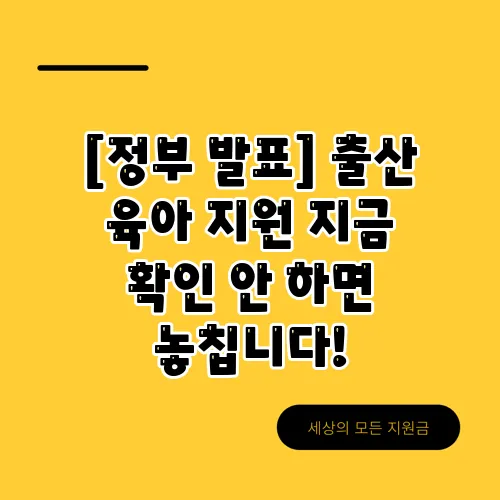 [정부 발표] 출산 육아 지원 지금 확인 안 하면 놓칩니다! 2025년 07월 02일 by 대한민국 지원금 복지 제도 알리미 목차 ▼ Home 카테고리 없음 [정부 발표] 출산 육아 지원 지금 확인 안 하면 놓칩니다! [정부 발표] 출산 육아 지원 지금 확인 안 하면 놓칩니다!메인 콘텐츠 생성 실패같이보면 좋은 글! 👉[놓치면 손해] 문화예술인 👉[정부 발표] 노후 준비 복 👉[놓치면 손해] 의료비 지원 공유하기 게시글 관리 지원금 복지 제도 분류 전체보기